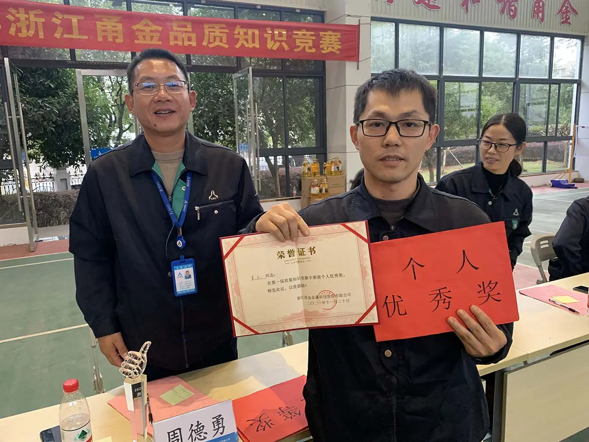 2021年11月20日下午,浙江甬金金属科技股份有限公司在甬金体育馆举办产品质量知识竞赛。本次竞赛是为了更好的加深公司员工对品质知识的了解,为了提高全员品质意识,共同学习质量知识、重视产品质量,汲取经验,摒弃不足,满怀信心,做好质量工作。