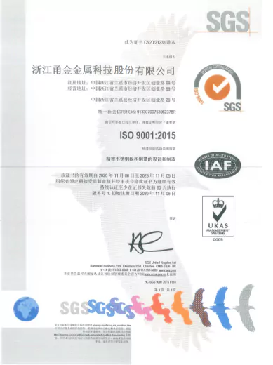建立了全面有效的ISO9001质量管理体系和IATF16949质量管理体系,制定高于国家的企业标准,注重品质提升,客户认同度高,从而建立了较好的甬金品牌。